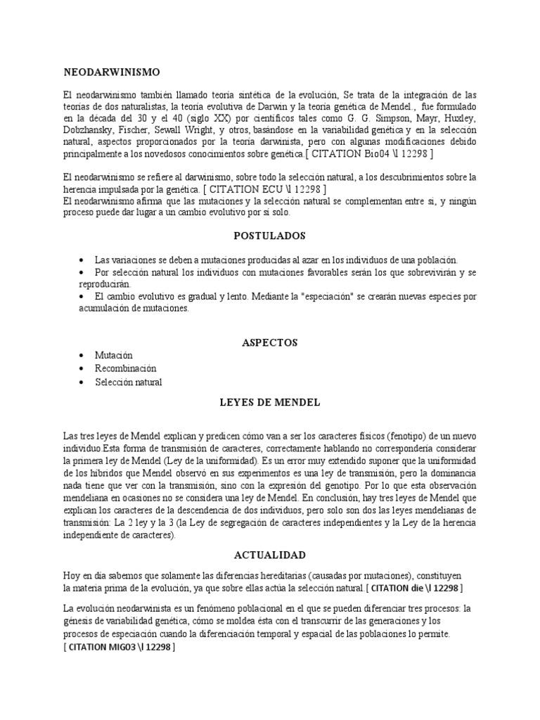 teorías de dos naturalistas, la teoría evolutiva de Darwin y la teoría genética de Mendel., fue formulado