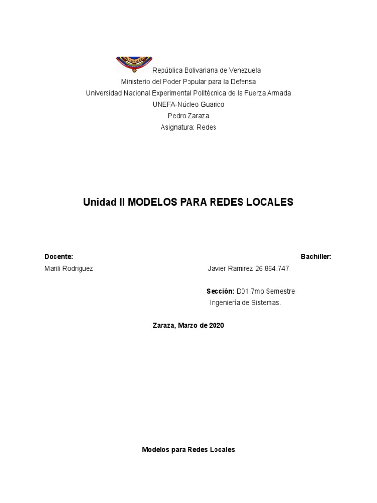 Unidad II MODELOS PARA REDES LOCALES