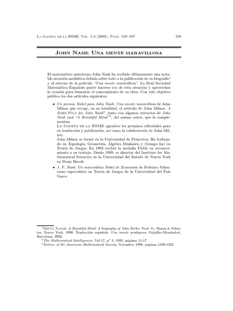 Nash and “A Beautiful Mind” 3 , del mismo autor, que lo comple-