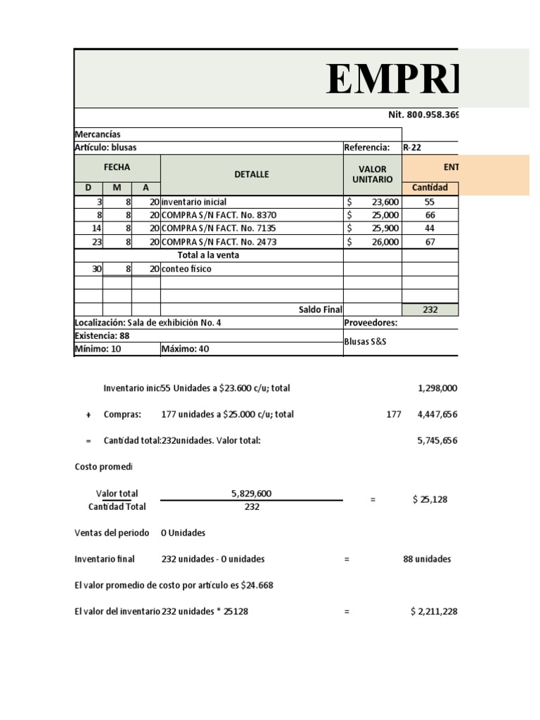 30 8 20 invenario inicial faltante 55 unidades $ 23,600