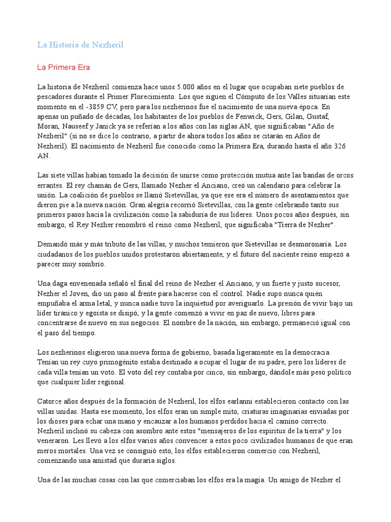 La historia de Nezheril comienza hace unos 5.000 años en el lugar que ocupaban siete pueblos de