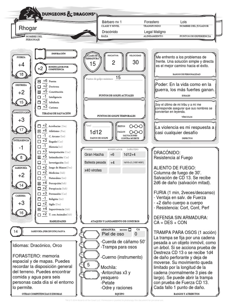 NOMBRE DEL RAZA ALINEAMIENTO PUNTOS DE EXPERIENCIA