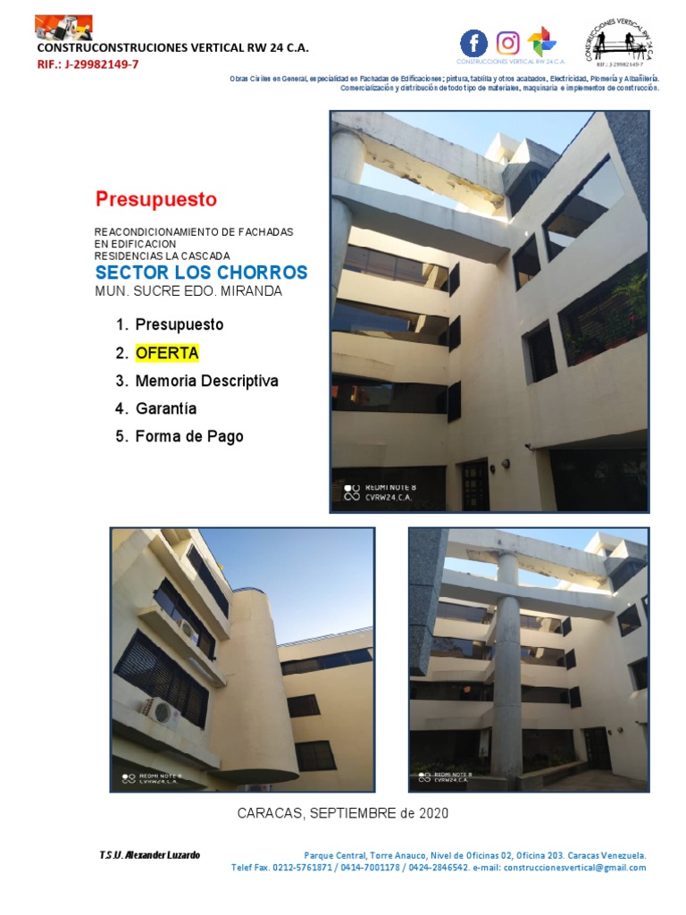 CONSTRUCCIONES VERTICAL RW 24, C.A. Fecha: 16/09/2020