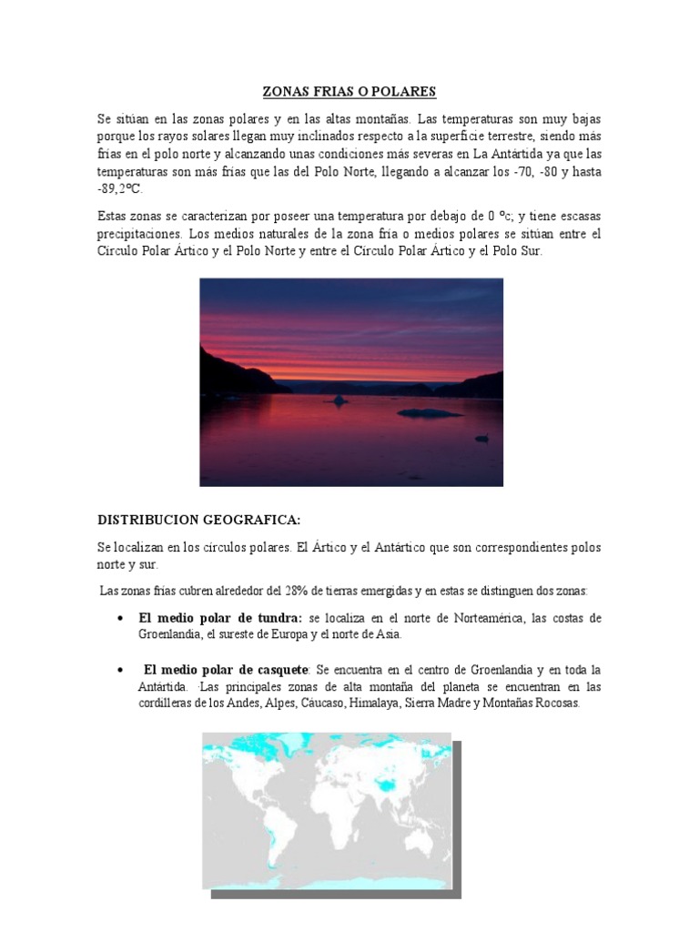 Estas zonas se caracterizan por poseer una temperatura por debajo de 0 °c; y tiene escasas