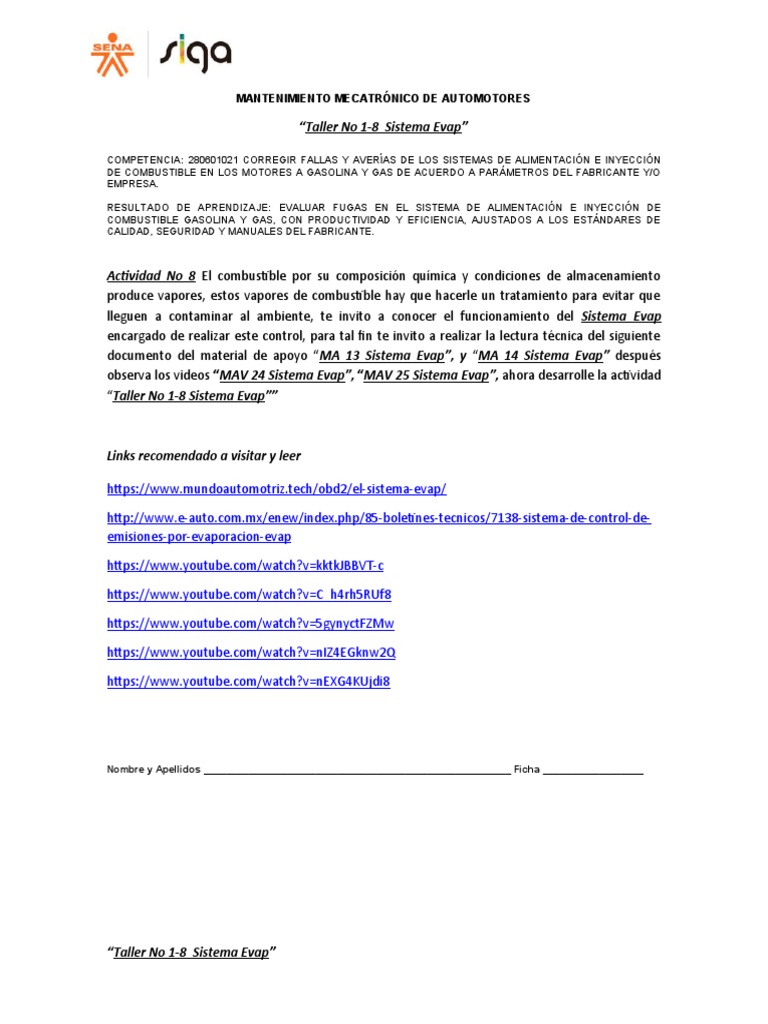 documento del material de apoyo “MA 13 Sistema Evap”, y “MA 14 Sistema Evap” después