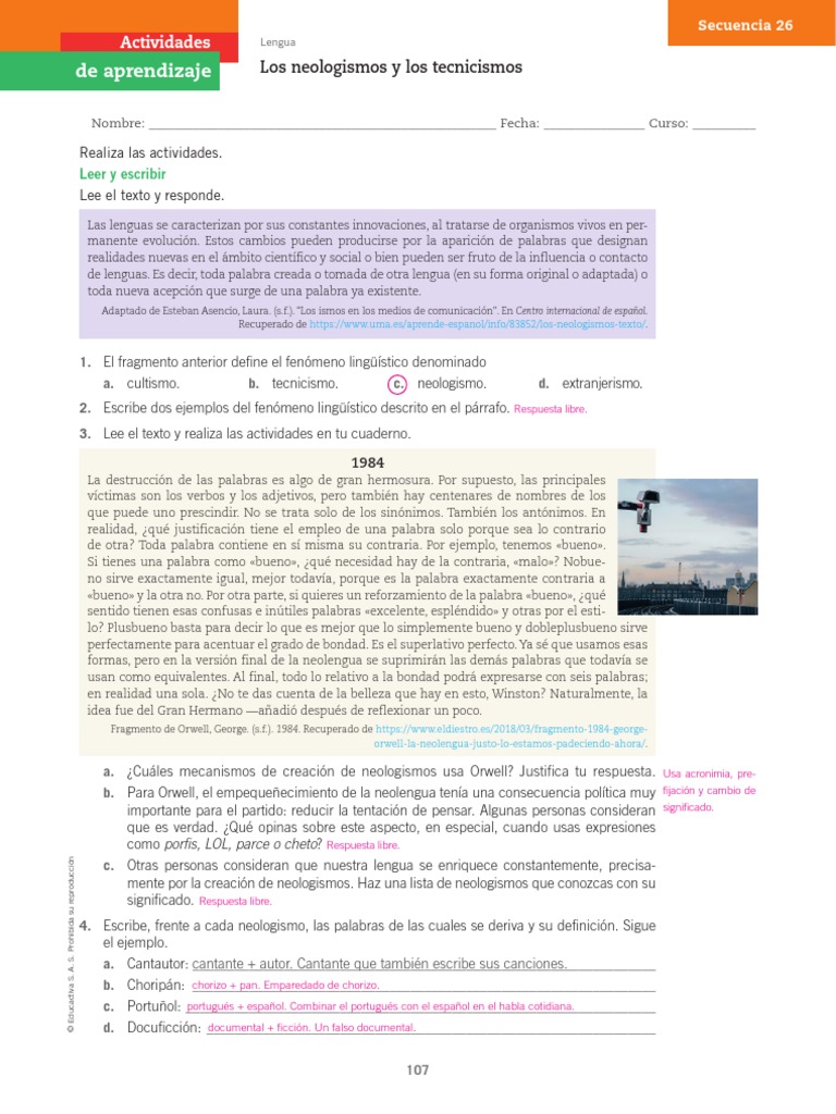 de aprendizaje Los neologismos y los tecnicismos