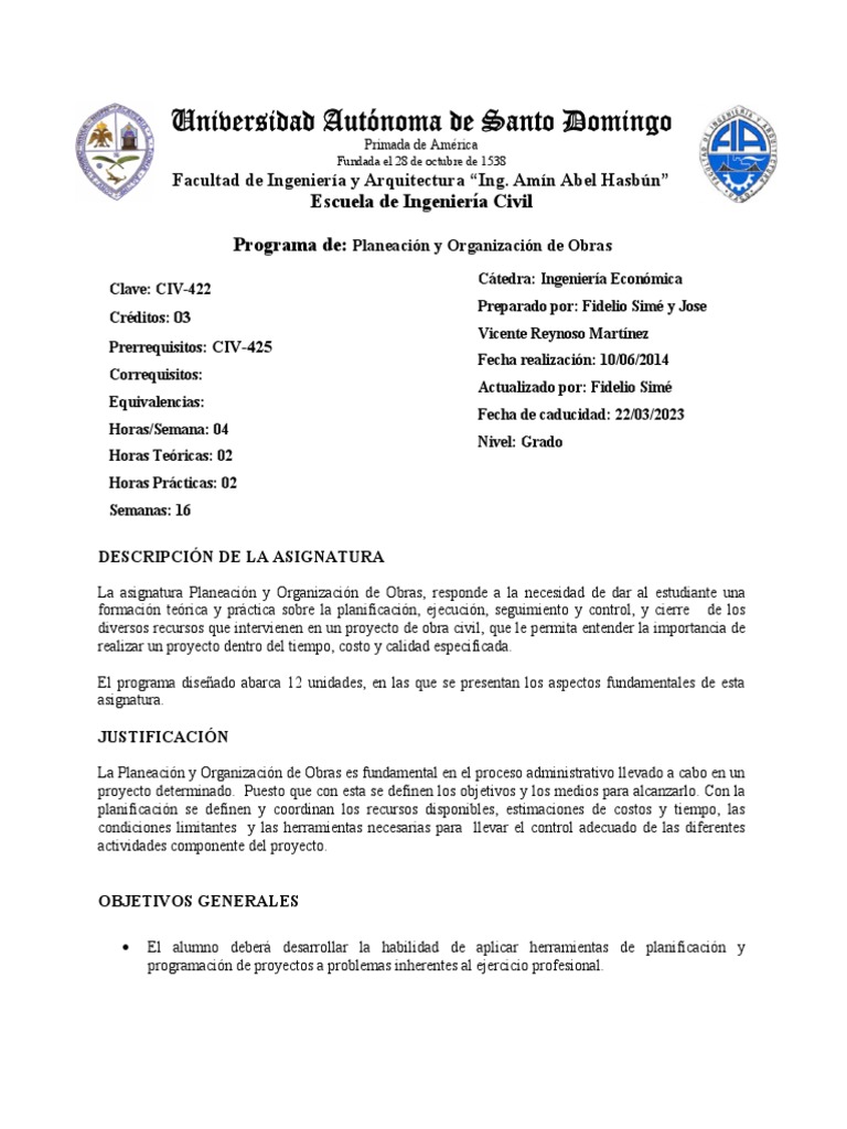 Programa de: Planeación y Organización de Obras