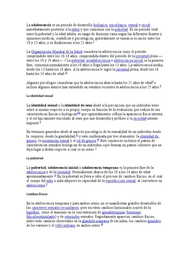 entre los 10 y 24 años—. 1 La pubertad, preadolescencia o adolescencia inicial es la primera