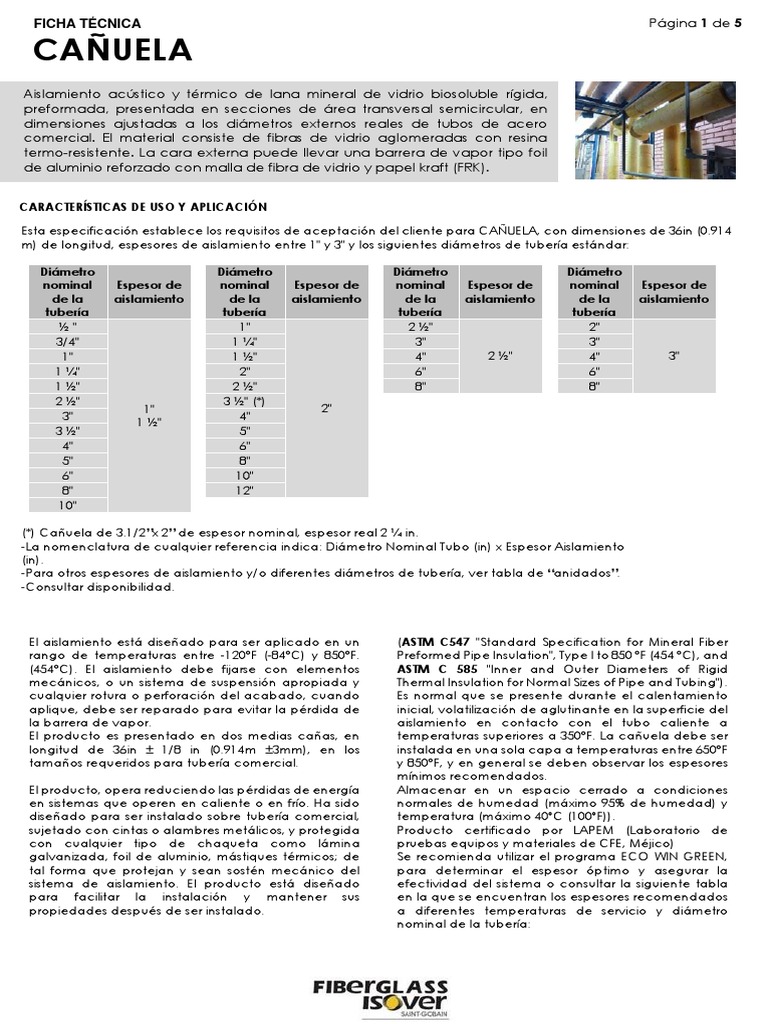 (454°C). El aislamiento debe fijarse con elementos ASTM C 585 "Inner and Outer Diameters of Rigid