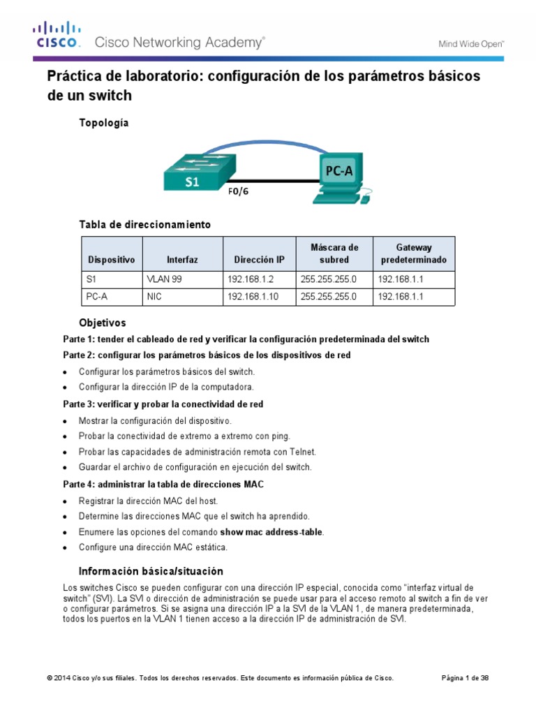 Práctica de laboratorio: configuración de los parámetros básicos