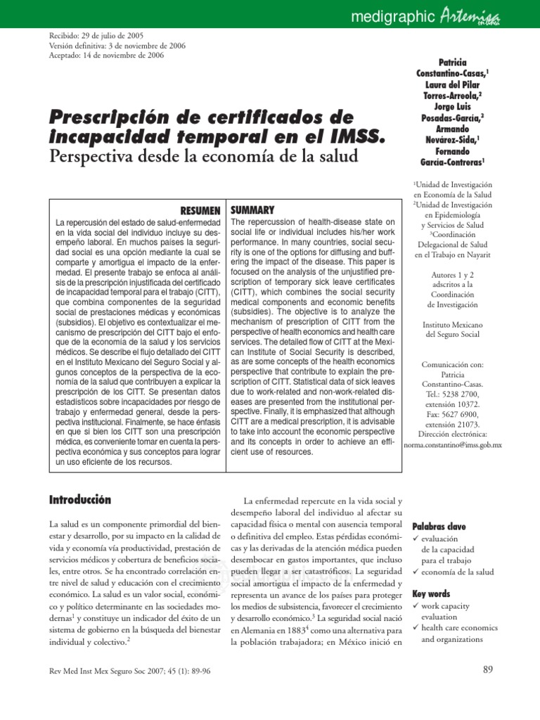 (subsidios). El objetivo es contextualizar el me- mechanism of prescription of CITT from the Instituto Mexicano