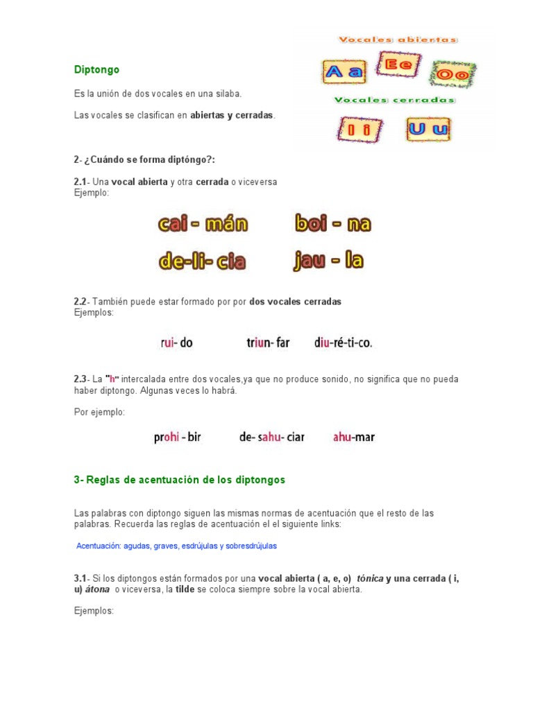 3.1- Si los diptongos están formados por una vocal abierta ( a, e, o) tónica y una cerrada ( i,