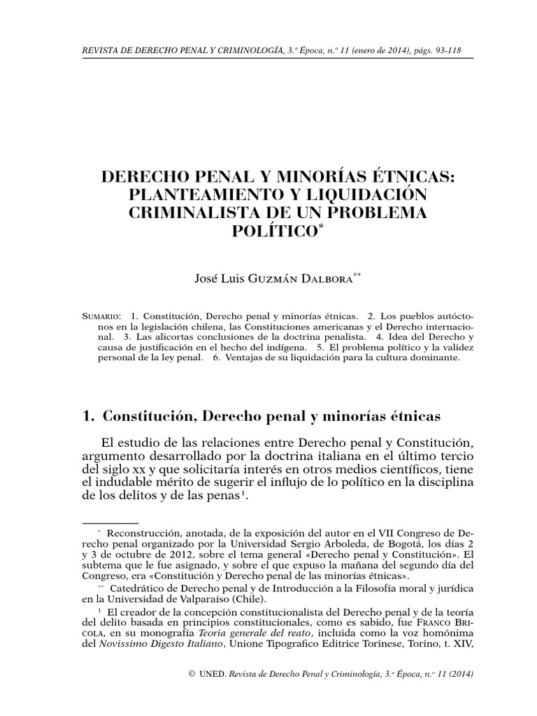 DERECHO PENAL Y MINORÍAS ÉTNICAS: PLANTEAMIENTO Y LIQUIDACIÓN … 95