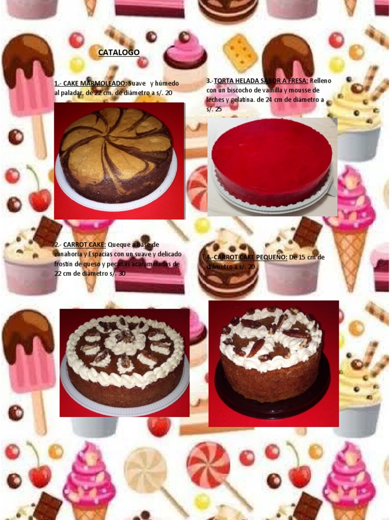 1.- CAKE MARMOLEADO: Suave y húmedo 3.-TORTA HELADA SABOR A FRESA: Relleno