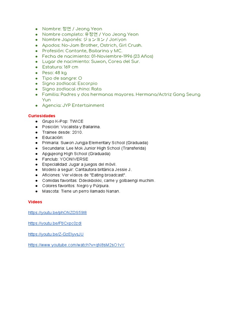 ● Nombre completo: 유정연 / Yoo Jeong Yeon