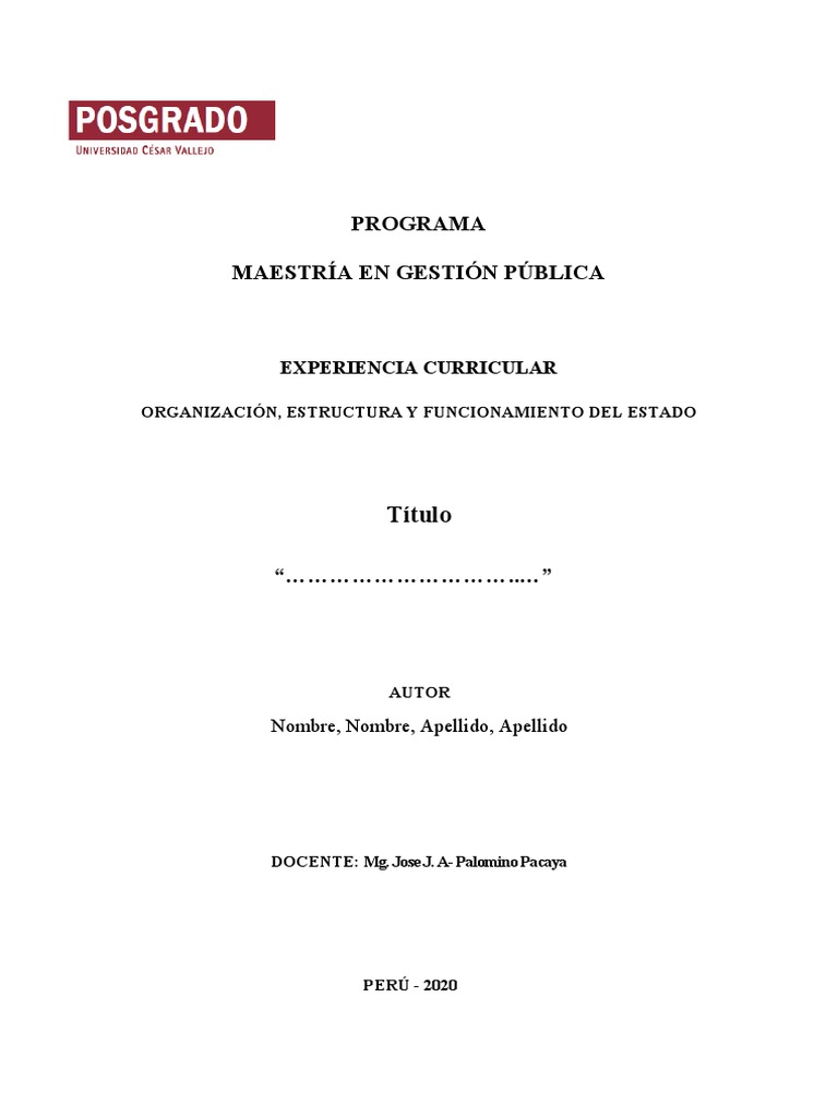 Este documento presenta un programa de maestría en gestión pública que incluye una experiencia curricular sobre la organización, estructura y funcionamiento del estado. El título y autor del documento no están especificados.
