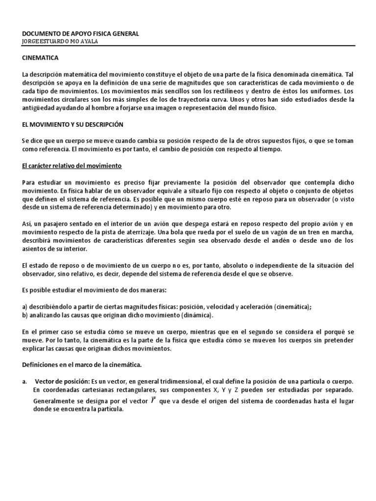 mueve. Por lo tanto, la cinemática es la parte de la física que estudia cómo se mueven los cuerpos sin pretender