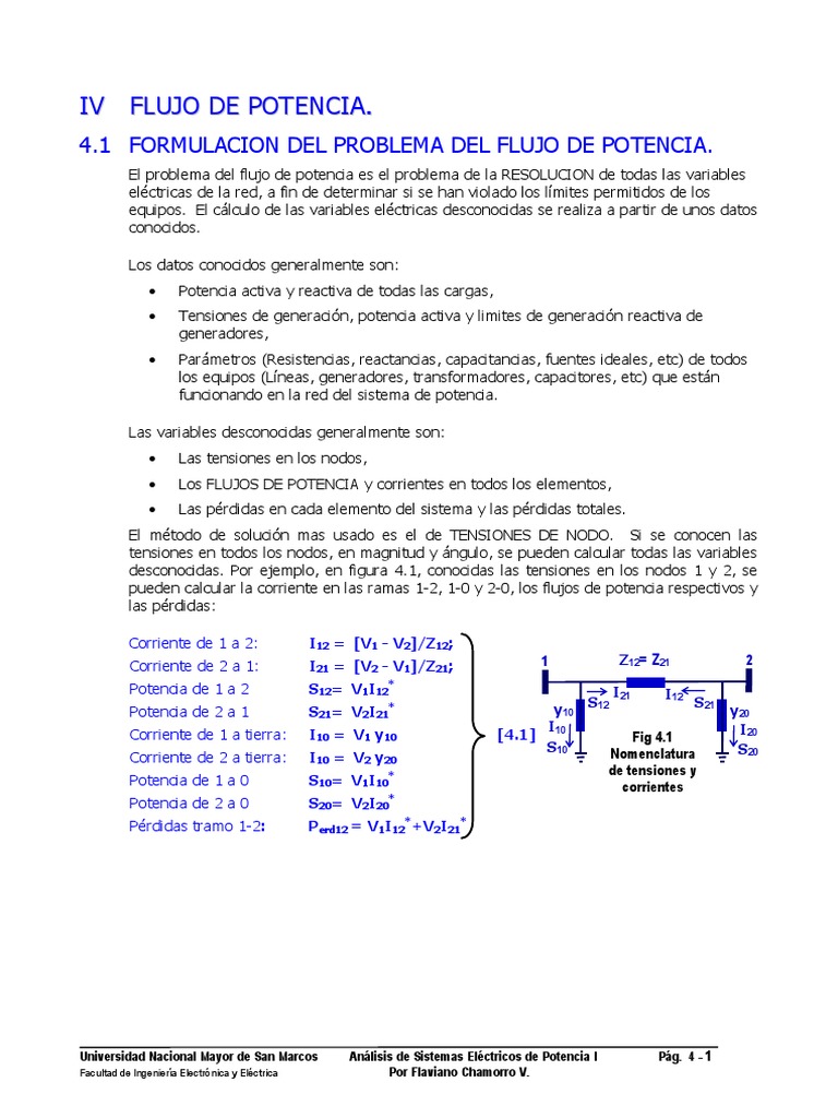 Universidad Nacional Mayor de San Marcos Análisis de Sistemas Eléctricos de Potencia I Pág. 4 - 1