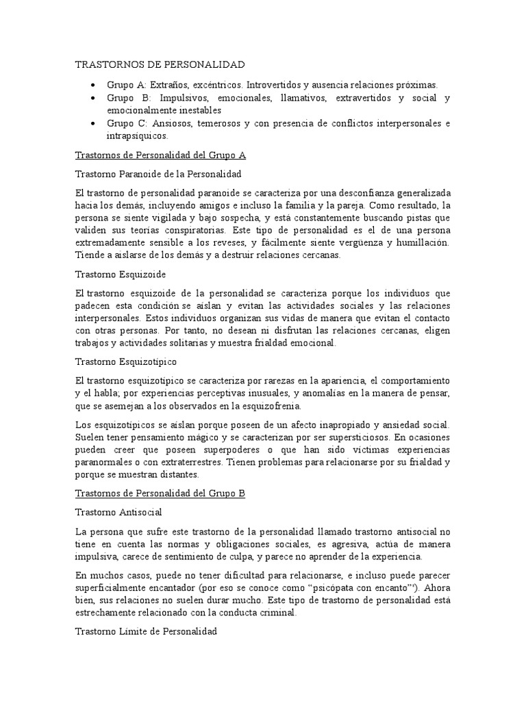 bien, sus relaciones no suelen durar mucho. Este tipo de trastorno de personalidad está