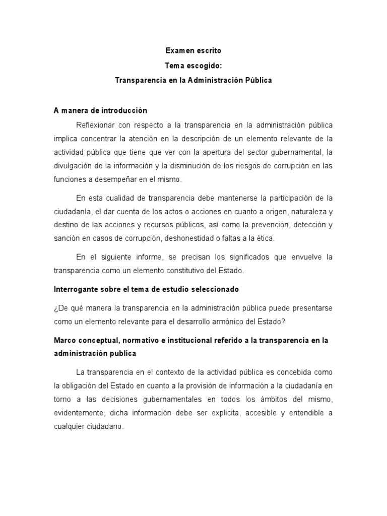 Marco conceptual, normativo e institucional referido a la transparencia en la