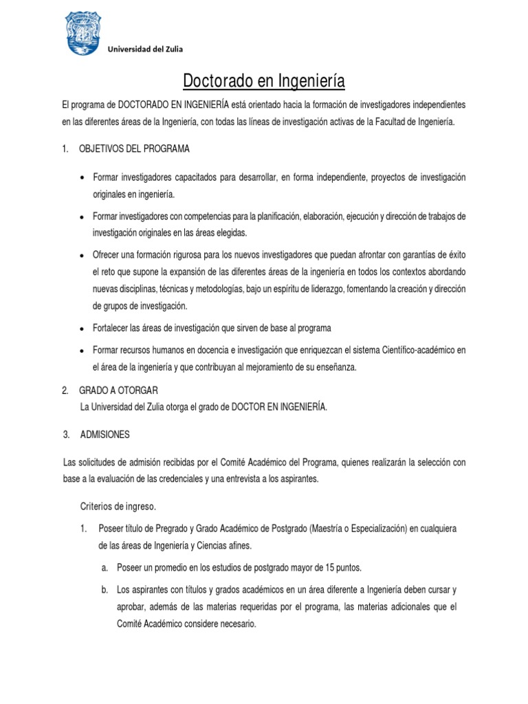 Académico de Doctor en Ingeniería en un tiempo de cuatro (4) años. Dentro de este tiempo, el estudiante realizar