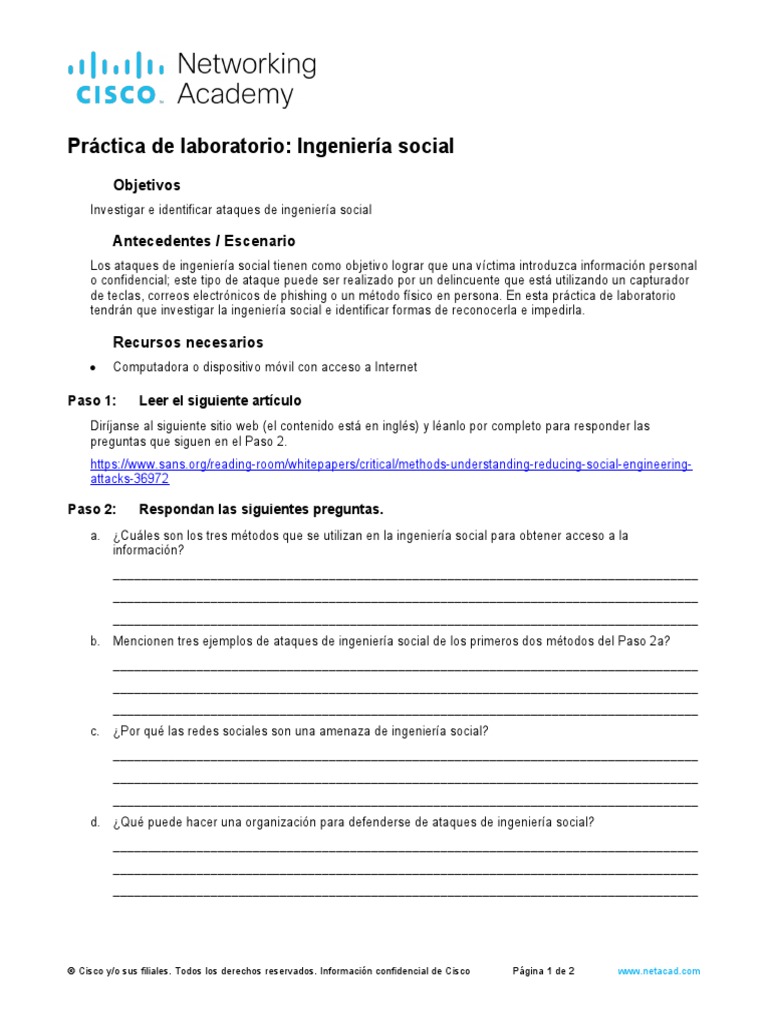 Cisco y/o sus filiales. Todos los derechos reservados. Información confidencial de Cisco Página 1 de 2 www.netacad.com