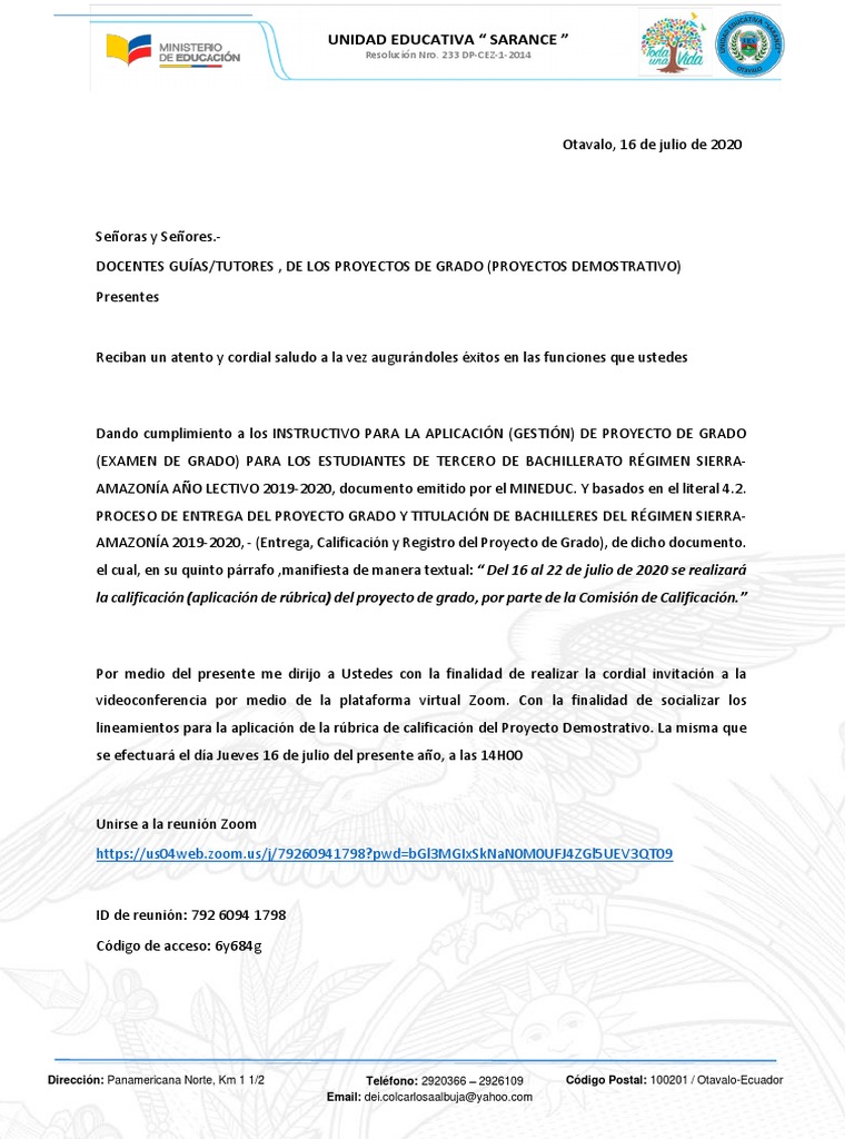 Por medio del presente me dirijo a Ustedes con la finalidad de realizar la cordial invitación a la