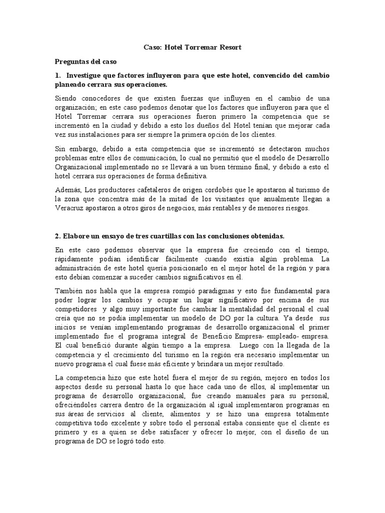 1. Investigue que factores influyeron para que este hotel, convencido del cambio