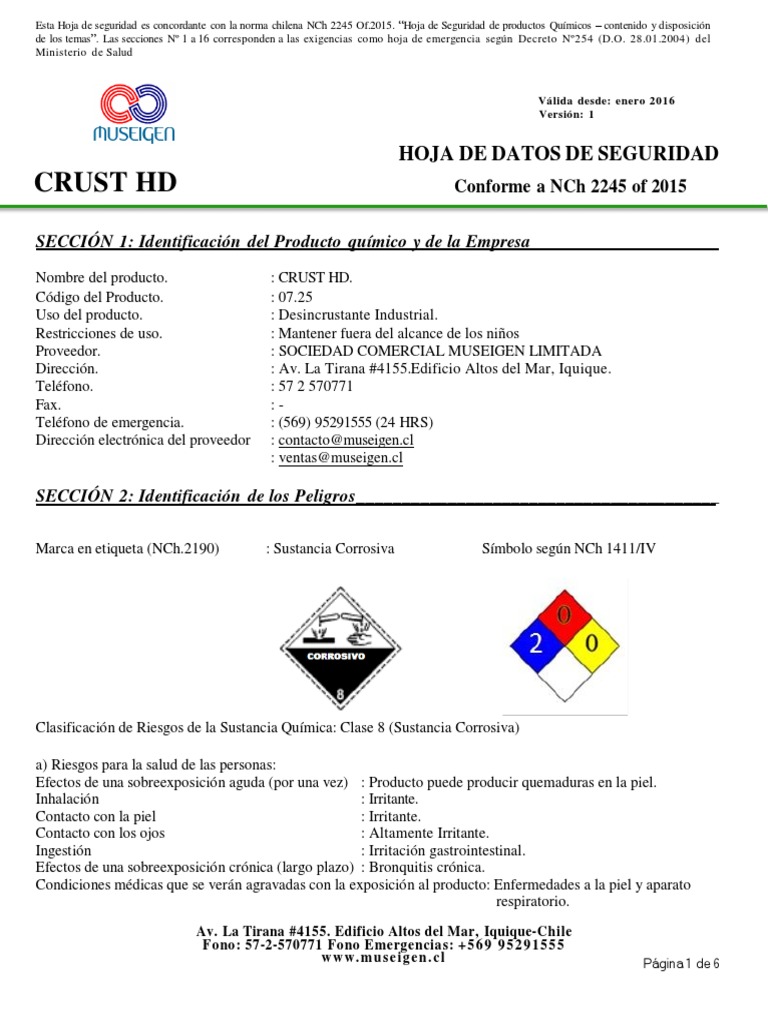 CRUST HD Conforme a NCh 2245 of 2015