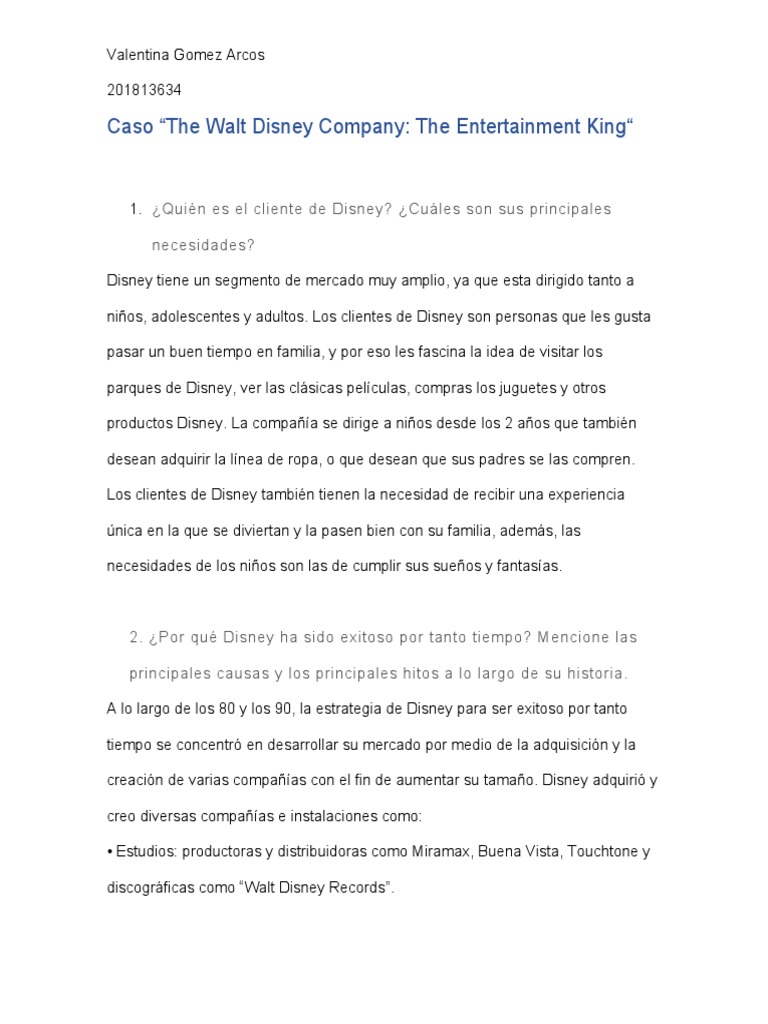 Caso “The Walt Disney Company: The Entertainment King“