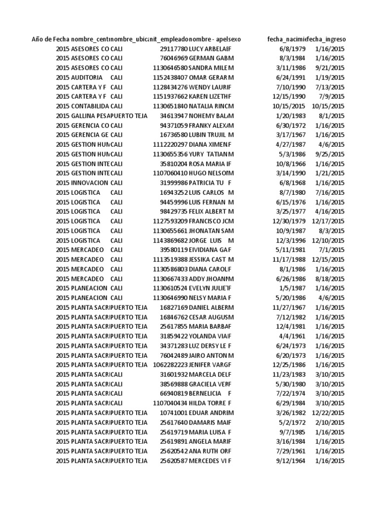 Año de Fecha nombre_centrnombre_ubicanit_empleadonombre - apellsexo fecha_nacimiefecha_ingreso