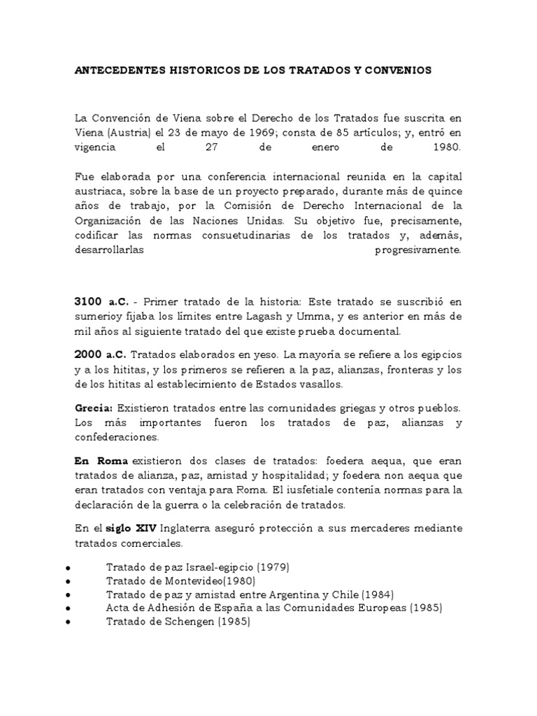 ANTECEDENTES HISTORICOS DE LOS TRATADOS Y CONVENIOS