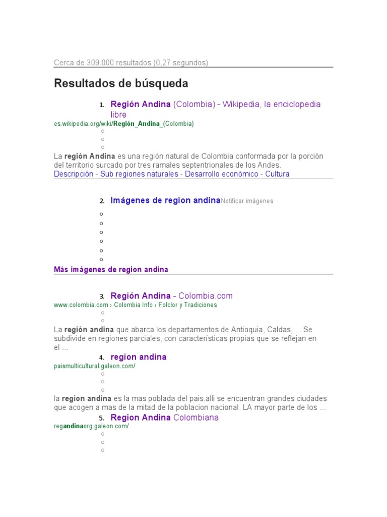 Todos los aspectos de la region andina colombina, además imagenes de la
