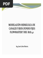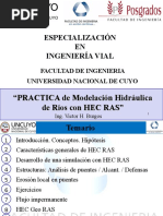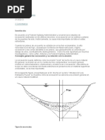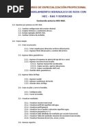Este documento describe los procedimientos para calcular la socavación en puentes usando el software HEC-RAS. Explica que el cálculo de la socavación total incluye tres componentes: agradación y degradación a largo plazo, socavación por contracción y socavación local. Detalla los pasos para desarrollar un modelo hidráulico del río, incluir la distribución de flujo, y luego ingresar los datos requeridos en HEC-RAS para calcular la socavación por contracción y local.