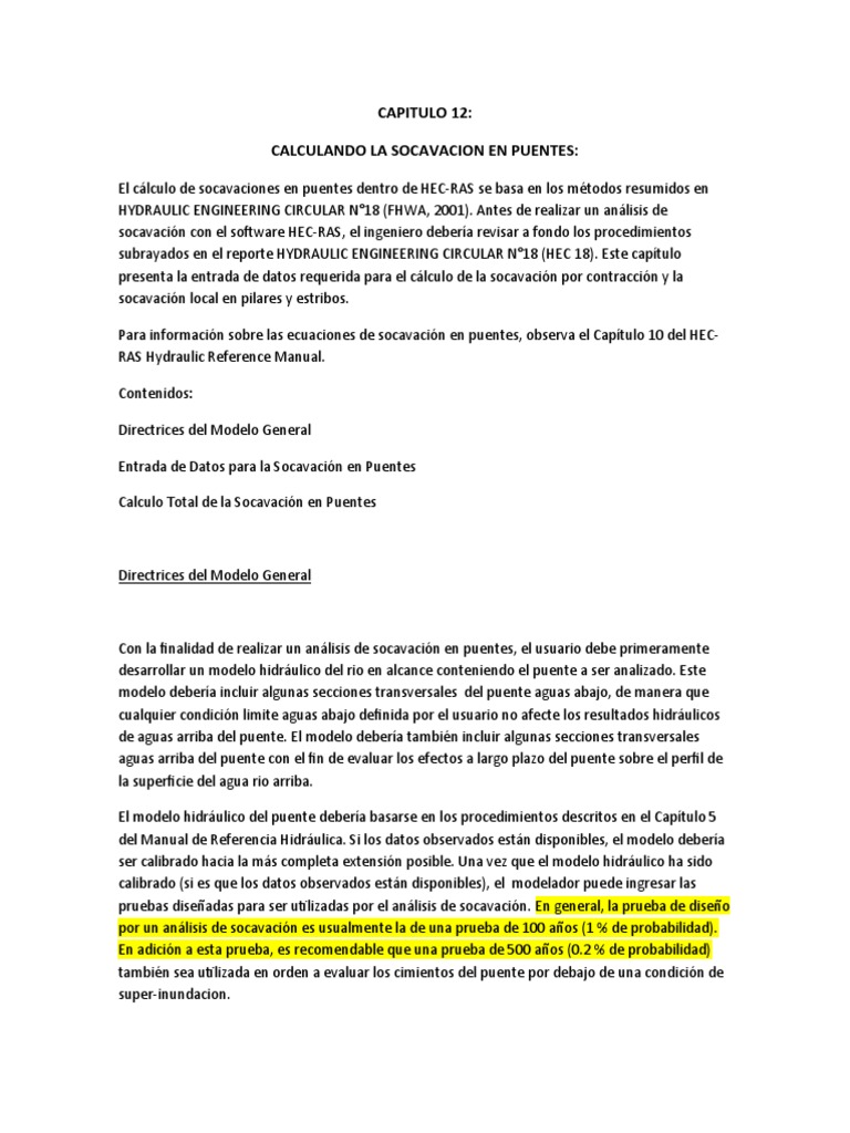 El cálculo de socavaciones en puentes dentro de HEC-RAS se basa en los métodos resumidos en