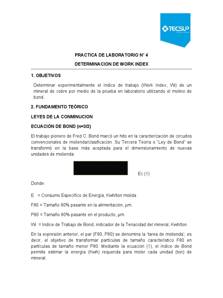 de cálculo del Work Index.