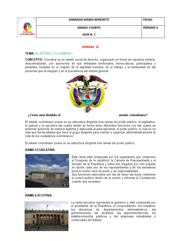 1. Consulta la constitución política de Colombia y completa el cuadro sobre las ramas