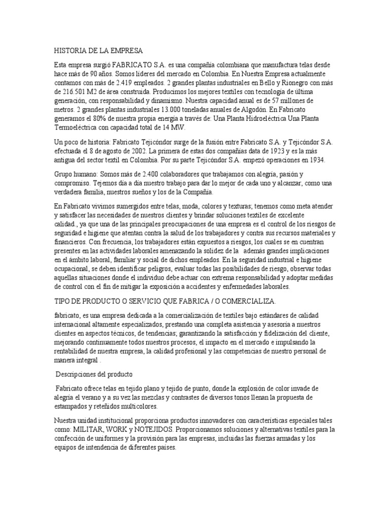 Esta empresa surgió FABRICATO S.A. es una compañía colombiana que manufactura telas desde