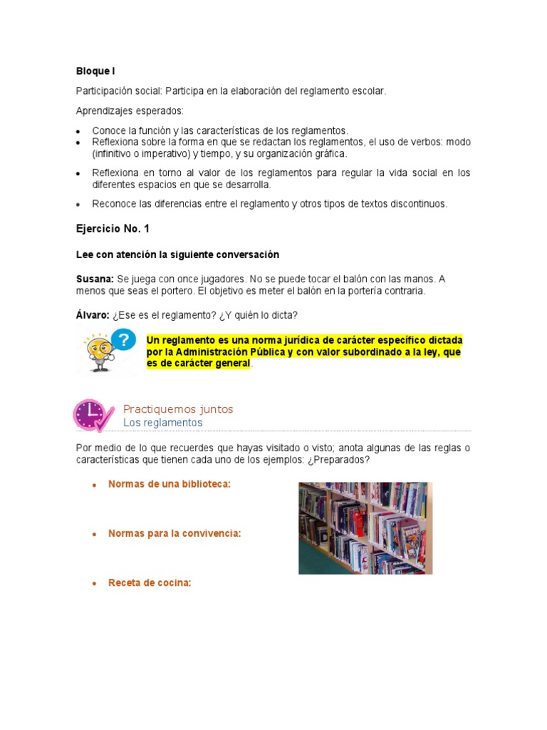 Participación social: Participa en la elaboración del reglamento escolar.