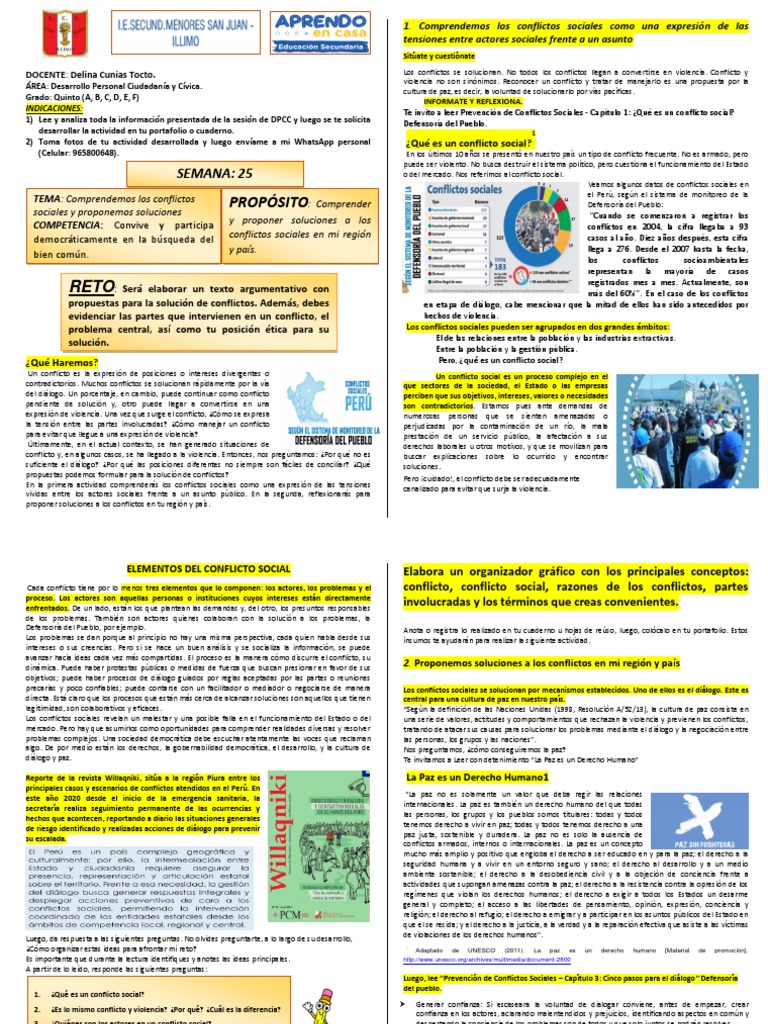 INDICACIONES: Te invito a leer Prevención de Conflictos Sociales - Capítulo 1: ¿Qué es un conflicto social?