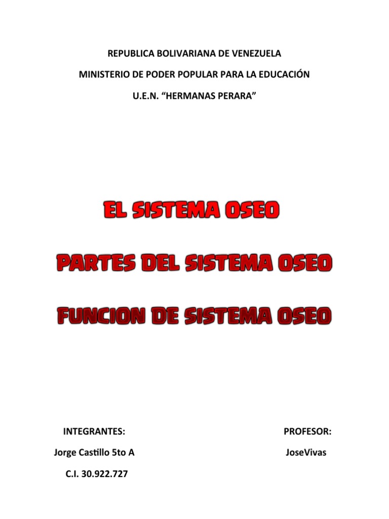 El siguiente trabajo tiene por finalidad estudiar el Sistema Óseo, sus componentes y