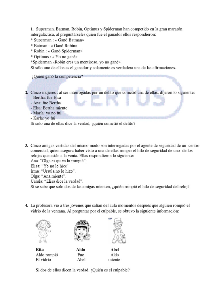 Si sólo 3 de ellos dicen la verdad, ¿quién miente?
