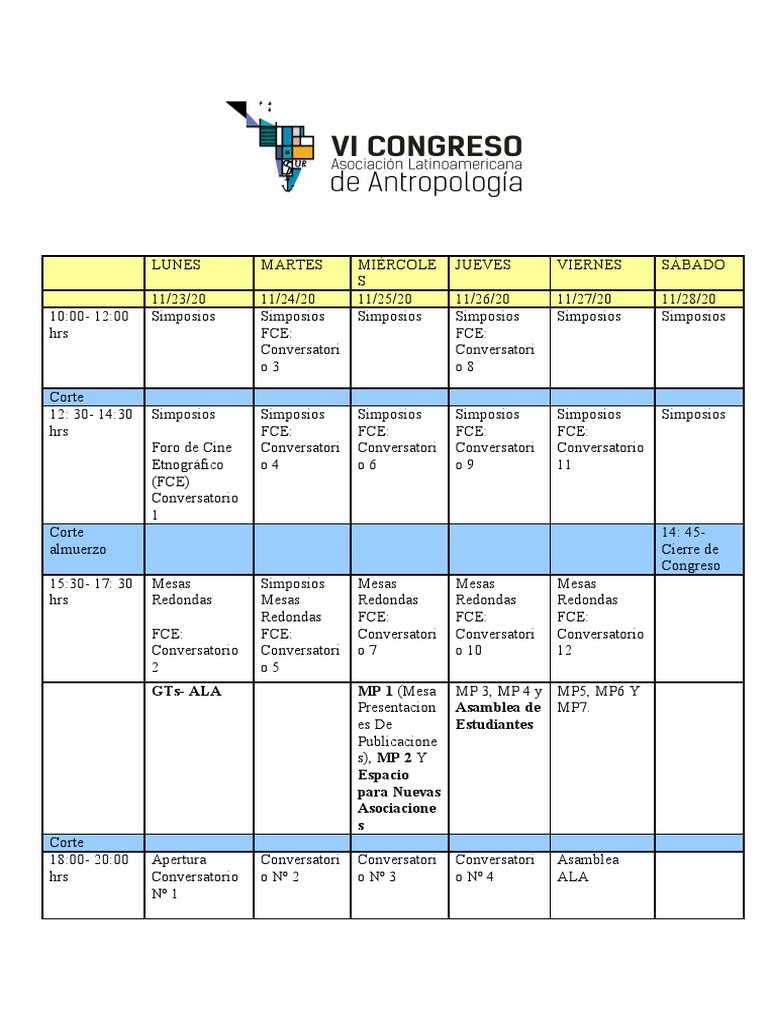 10:00- 12:00 Simposios Simposios Simposios Simposios Simposios Simposios