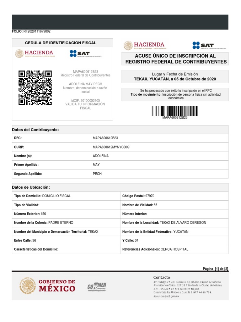 Tipo de Domicilio: DOMICILIO FISCAL Código Postal: 97970
