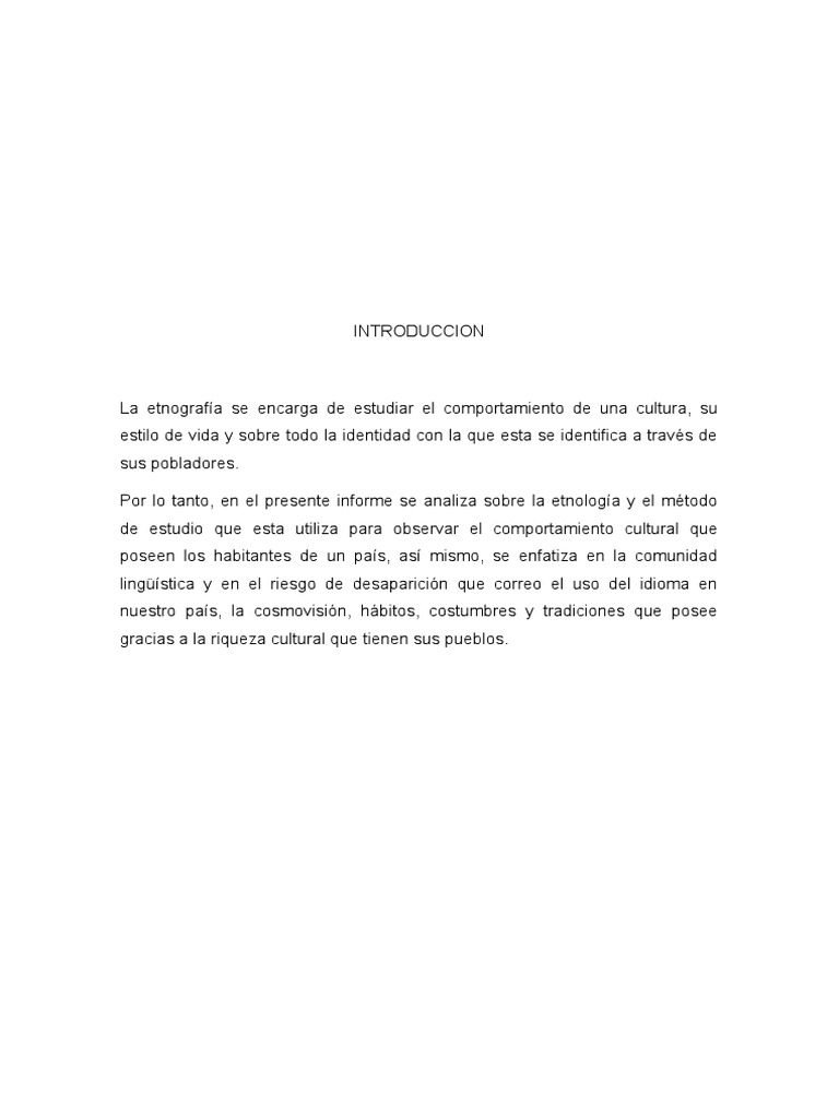 Por lo tanto, en el presente informe se analiza sobre la etnología y el método
