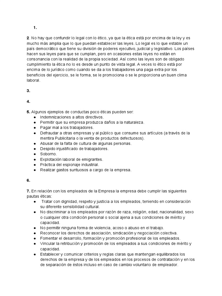 5. Algunos ejemplos de conductas poco éticas pueden ser: