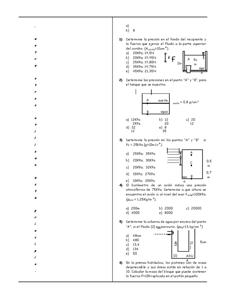 e 1) Determine la presión en el fondo del recipiente y