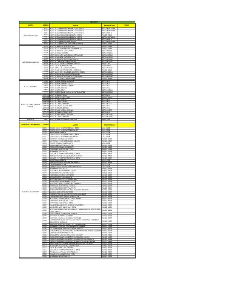 ALIMENTOS EN CONSERVA CODIGO MARCA PRESENTACIÓN