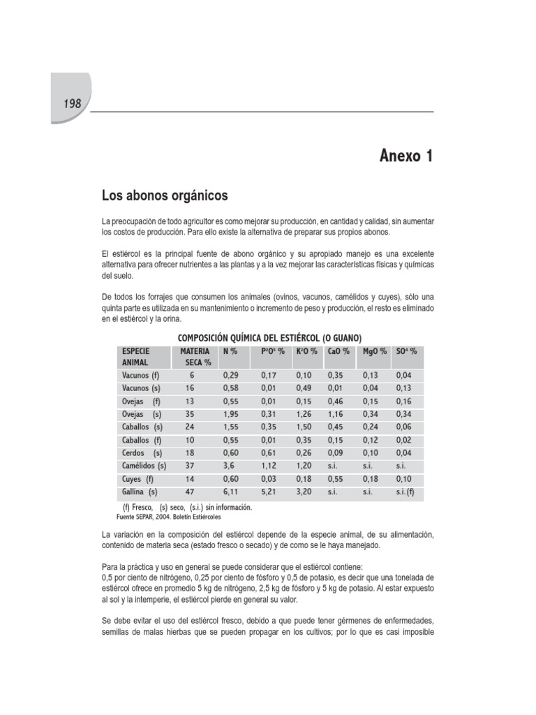 Fuente SEPAR, 2004. Boletín Estiércoles