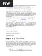 "La informática es la disciplina o campo de estudio que abarca el conjunto de